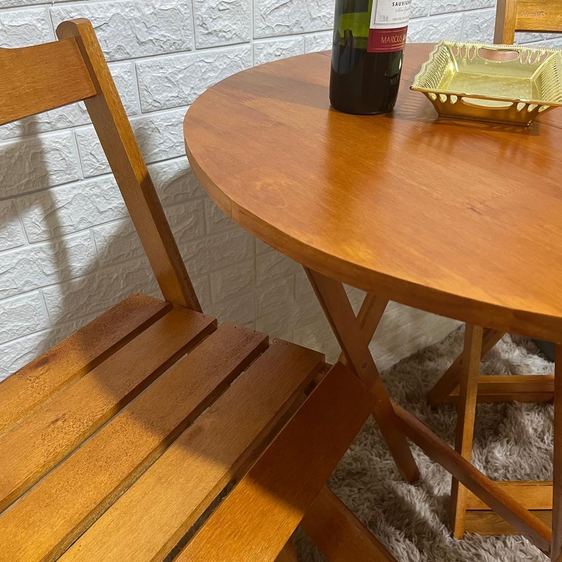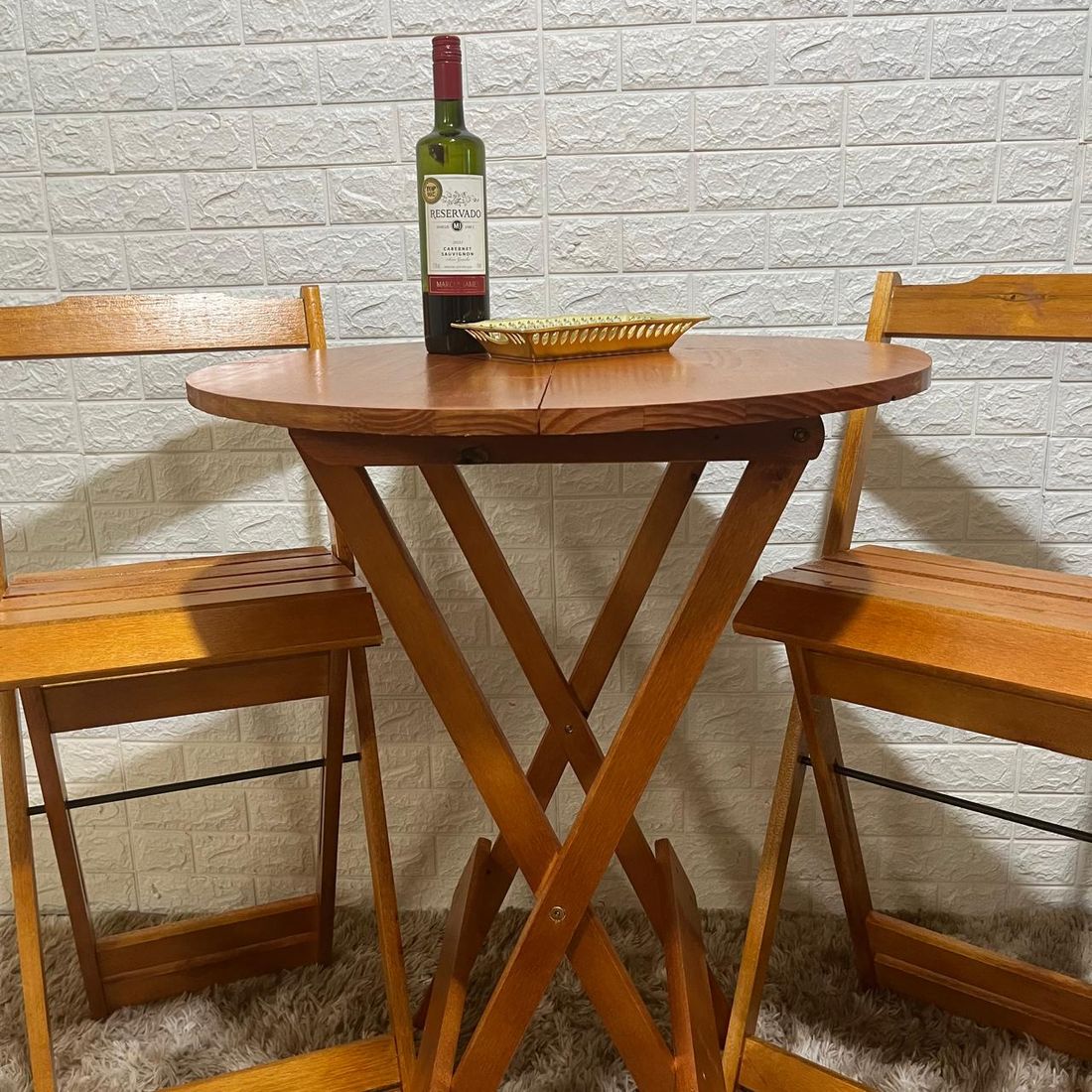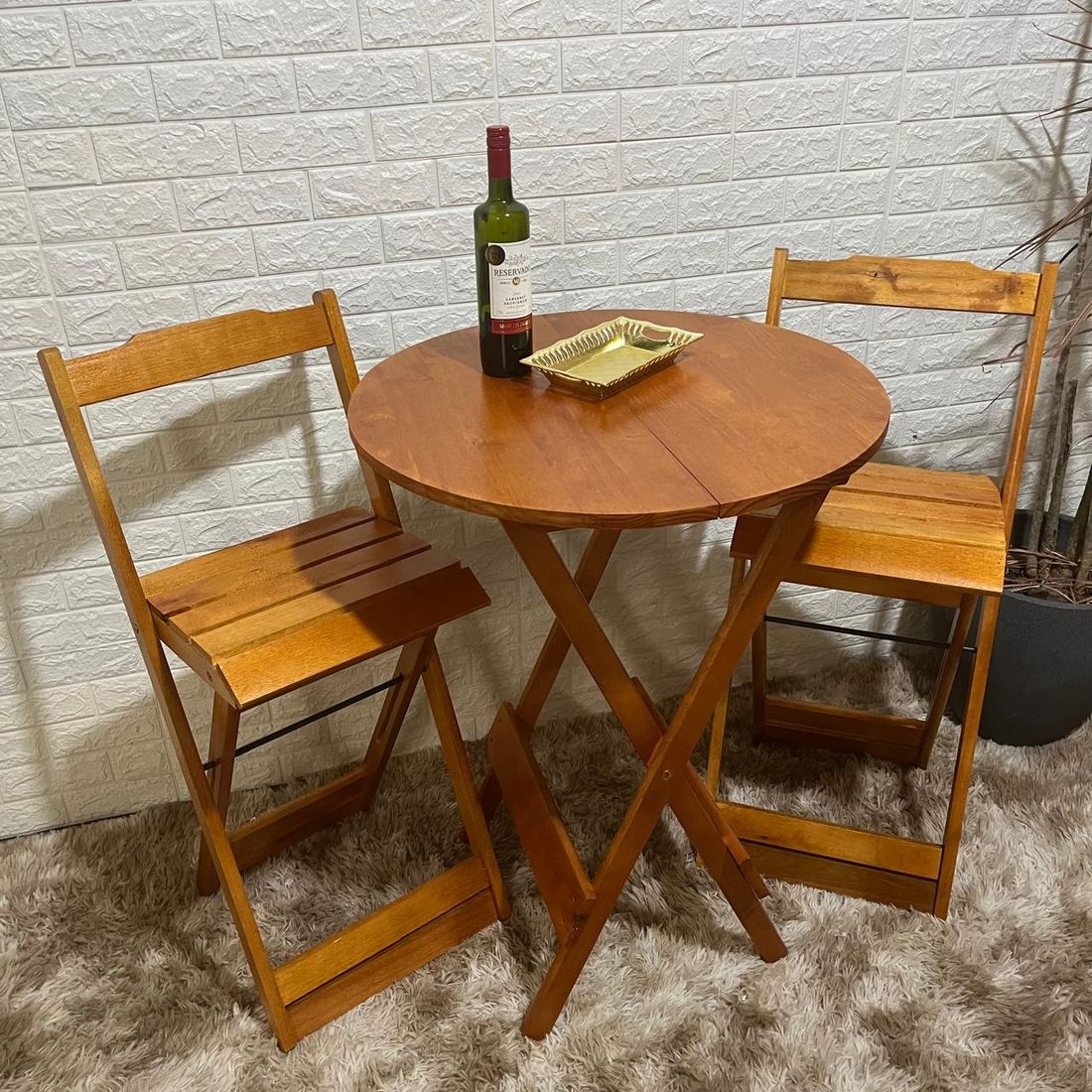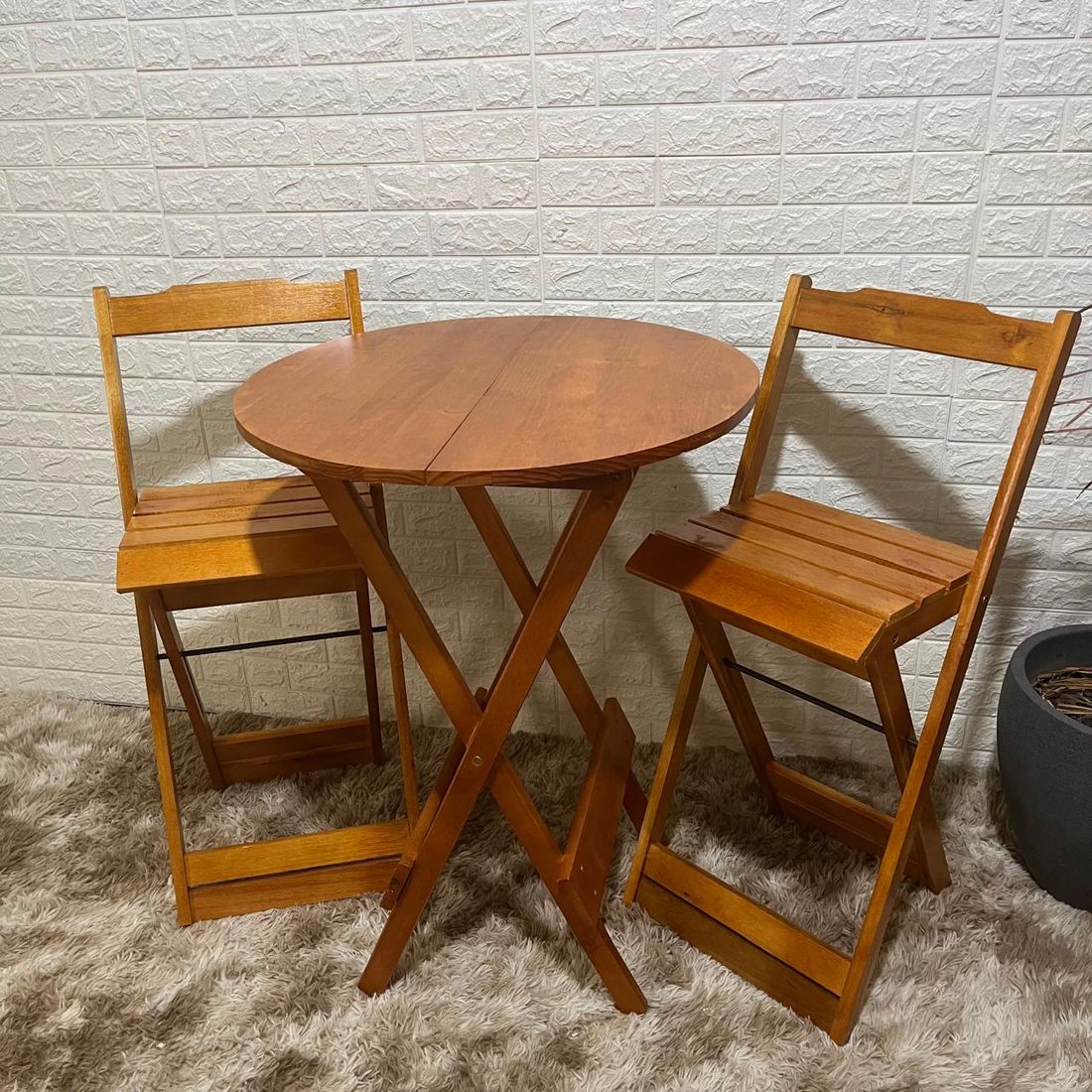 Conjunto Bistrô Dobrável de Madeira Mesa com 2 Banquetas ( MEL )
