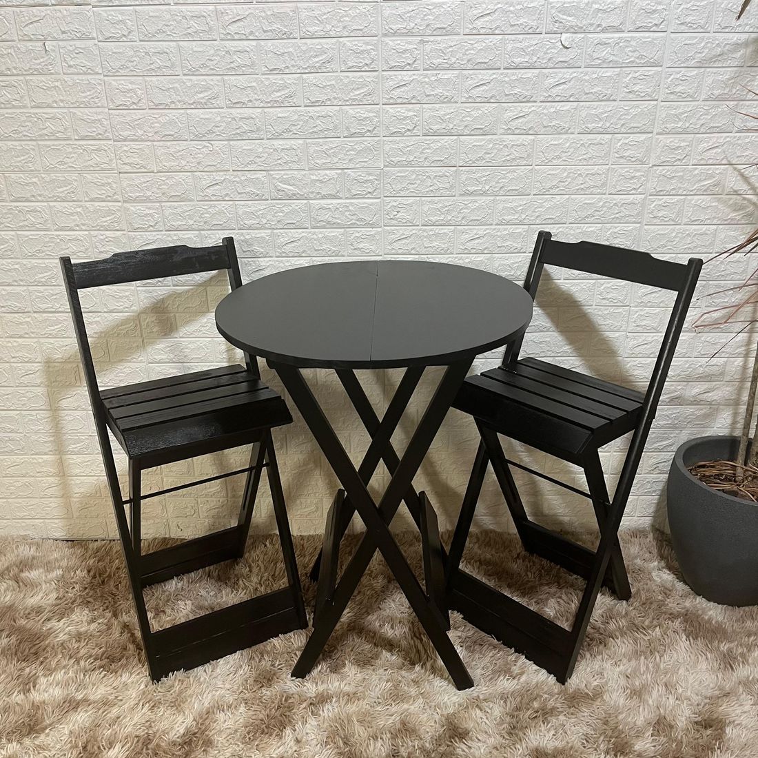 As banquetas possuem dimensões ideais: 37 cm de profundidade, 38 cm de largura e 99 cm de altura, proporcionando conforto sem ocupar muito espaço. O modelo clássico combina perfeitamente com diferentes estilos de decoração, enquanto a mesa redonda de 55 cm de largura complementa o conjunto, tornando-se uma peça central em sua sala.