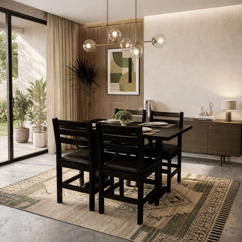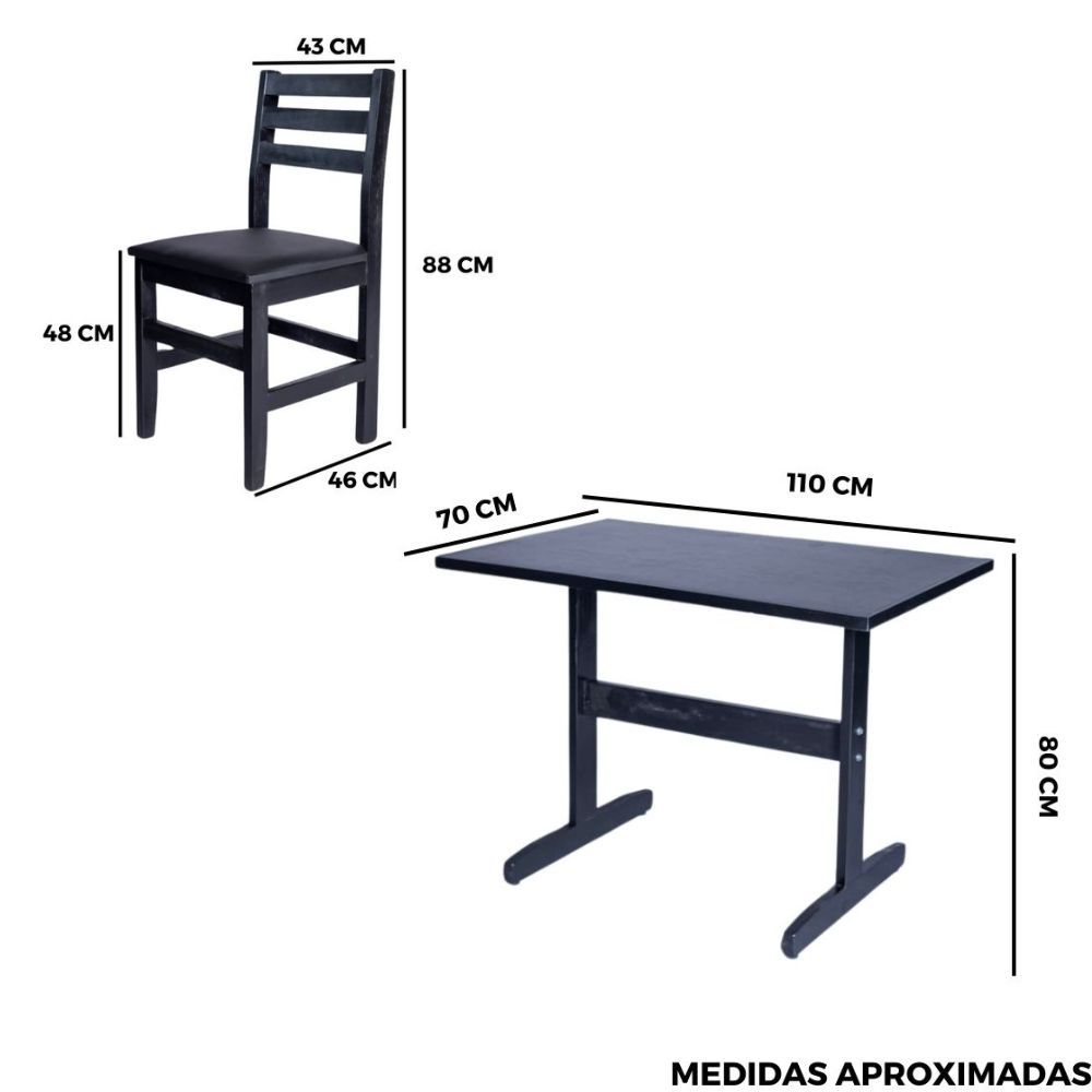 Conjunto Fixo 110x70 Mesa com 4 Cadeiras Estofadas ( PRETO )