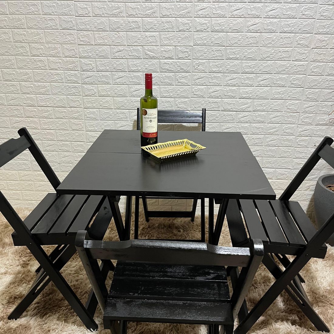 O Conjunto Dobrável com cadeiras é uma ótima opção para bares, restaurantes, choperias, boates e estabelecimentos comerciais, áreas de lazer e também para sua casa. Perfeito para qualquer tipo de ambiente, trazendo charme e conforto.